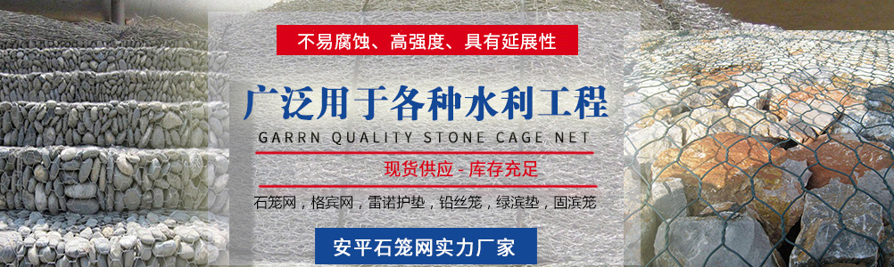 本公司主要生產:石籠網格賓網、重型六角網、鍍高爾凡格賓擋墻、雷諾護墊、綠濱墊、固濱籠、耐特籠、鉛絲石籠、格賓石籠、電焊石籠網、鍍鋅石籠網、河道石籠網、包塑石籠網、勾花網、高爾凡石籠網、三擰石籠網、五擰石籠網等,可用于保護和支持河道、海堤、山坡、路橋、水庫及其他土木工程, 是防洪固堤工程的上好材料。以可靠的質量,滿意的售后服務深受新老客戶的好評。